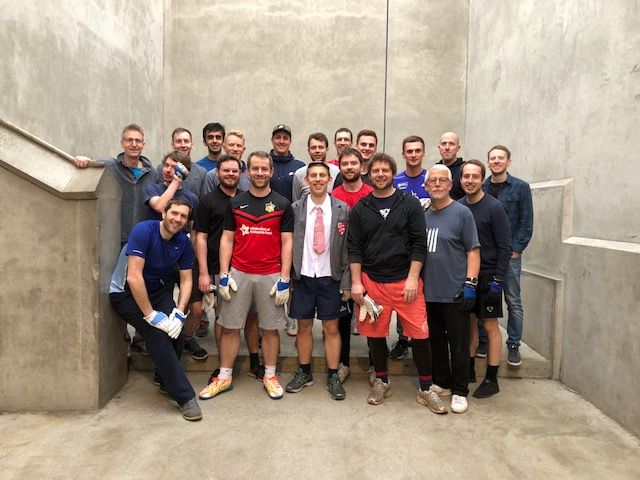 Until, that is, Old Olavian Aston Stockdale decided that after years of missing playing since his schooldays at St.Olave's, he would finally seize the opportunity to show all of his friends exactly what it was that he'd been banging on about for all these years by getting them all to play a morning of Fives as part of his stag do last weekend.