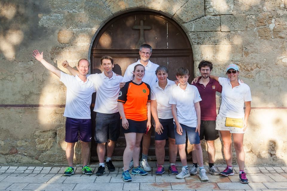 A few months later and the first ever Paume Artignoscaise Team GB was on the Eurostar and TGV and heading to Artignosc. Gareth Hoskins, Tom Hoskins, Karen Hird, Mandie Barnes and Ralph Morgan were joined there by Seb Cooley and Nick Shaw and wife Michele, holidaying nearby with Michele's family. Our first couple of days were spent exploring the beautiful region, including some spectacular kayaking down the Verdon river, and taking part in our first practice sessions to familiarise ourselves with the game of paume itself.
