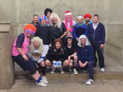 Congratulations to Graham Pulsford who won Aldenham Fives Club's fancy dress Fives Christmas competition last night (18 December). Players were asked to dress up with the theme of 'hair'. Most chose wigs which proved very itchy but Richard Dennis won a Mars Bar for remaining bewigged for all four of the 20 minute games.