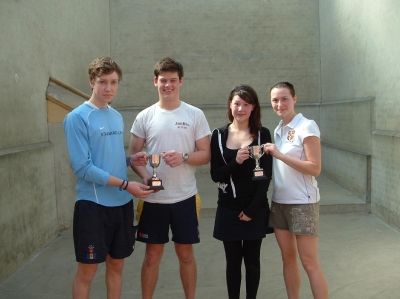 The first ever EFA Under 21s Tournament took place at Eton on Sunday 25th April, with some terrific Fives and two tremendously exciting finals, with the mens title being won by Andrew Joyce and Jeremy O'Neill and the ladies by Emily Scoones and Natalie Lilienthal.