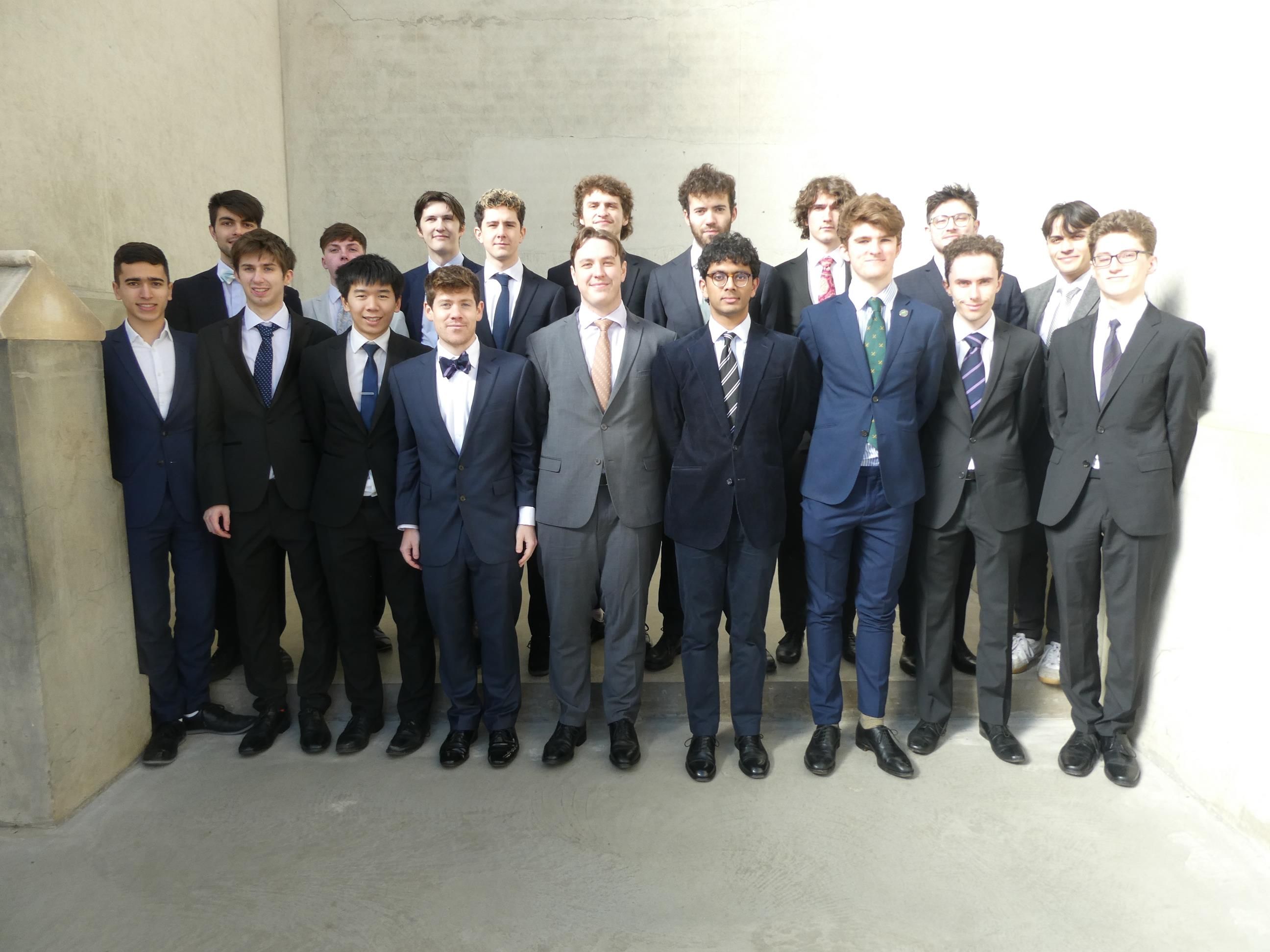 Oxford's strength in depth could be seen by the presence at fourth pair of Olavian fresher Tommy Farmer, a former U16 national champion, and he and fellow Olavian Aaditya Deshmukh were first to finish, dismissing Alex Davies & Tom Ford for the loss of just three points. Veteran Spencer Chapman was back again at fifth pair, closing in on Nigel Cox's record as the oldest ever Varsity Match player, and he and another Olavian in Rohan Tse defeated Alex Ukrasin & Cholmeleian Albie Gavshon. By far the closest match of the day was the sixth pair match, which saw Luxembourg's greatest ever Eton Fives player Cyril Schroeder team up with Winchester Fives expert Shiloh Wu to win a nail-biter against Olavian Lasith Siriwardana and Citizen Indigo Luksch 3-1, taking two of the four sets 15-14 and finishing in front of the biggest crowd of the day. There was also a fourth pair played in the second team match and another comfortable Oxford victory, Salopian Dominic Mcloughlin and yet another Citizen Gabriel Oldknow winning against Tom Salter & Conor McKenna.