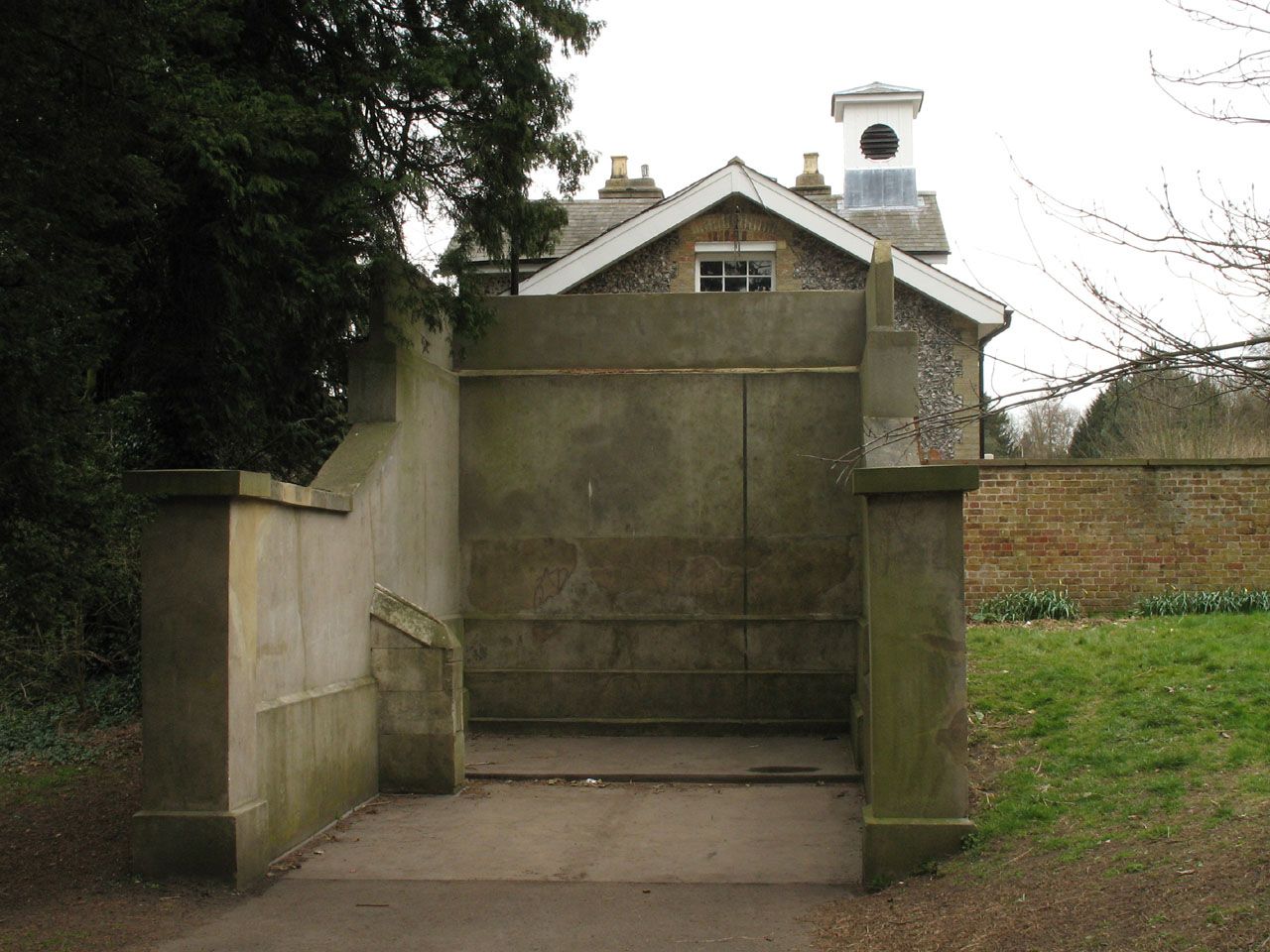 When his sons returned from Eton enthusing about a new game they had discovered Sir John Lubbock, later to become Lord Avebury responsible for the introduction of the August Bank Holiday, built for them an Eton Fives court in the garden, against the stable walls of his mansion. One wonders how much it was used. Being a mere fifteen miles from London, at Farnborough, Kent and with a twenty-seven bedroom mansion the Lubbocks presumably had enough visitors to try their hand on court every day now and again. It is less likely to have been used after the London Borough of Bromley took over the estate in 1965, an impression strengthened on seeing the tree growing out of the front step a foot in front of the buttress.